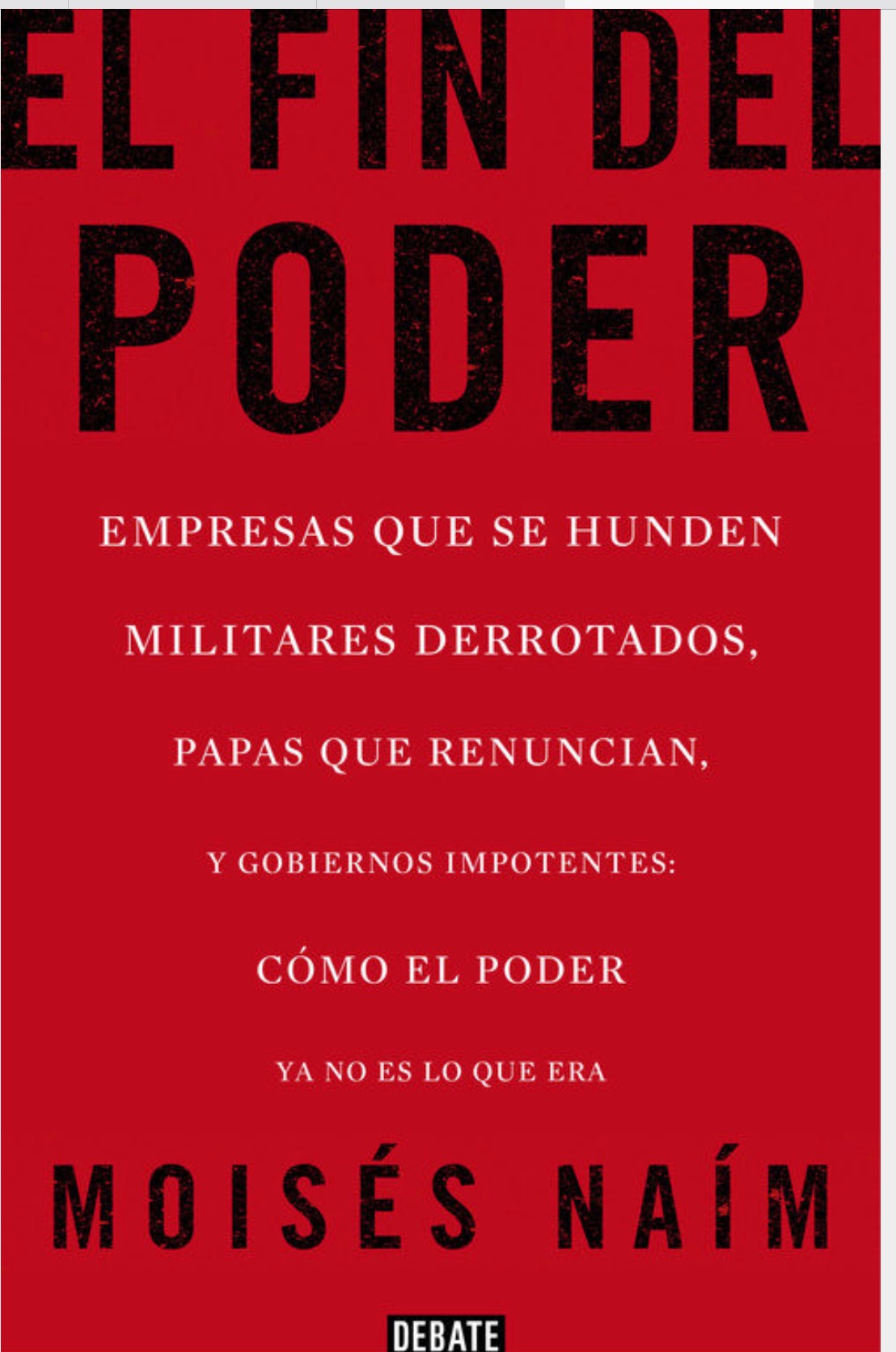 El libro es un documento muy trabajado sobre la disrupción que el poder está sufriendo. Acierta en la estructura de capítulos, en las diferentes perspectivas y el trabajo de documentación, que nos permite analizar en profundidad y extraer nuestras propias conclusiones sobre las distintas formas de poder y los cambios que sufren, colocando el foco en todas sus vertientes y agentes – política, religión empresa, personajes, movimientos sociales – y nos ayuda a encontrar enfoques innovadores sobre cómo nos organizamos y repartimos el poder. En contra de lo que pueda parecer, Moisés Naím no se suma a los que alertan de que estamos sometidos a un nuevo tipo de «dictadura» del poder como las de Google, Facebook o Twitter, y simplemente razona que la influencia de internet y las redes sociales no es el detonante de la degradación, porque aunque decisivas, no dejan de ser una herramienta al uso de la gente. Es ahí donde radica su principal preocupación, en el tipo de personas que conforman la sociedad en la que nos estamos convirtiendo.