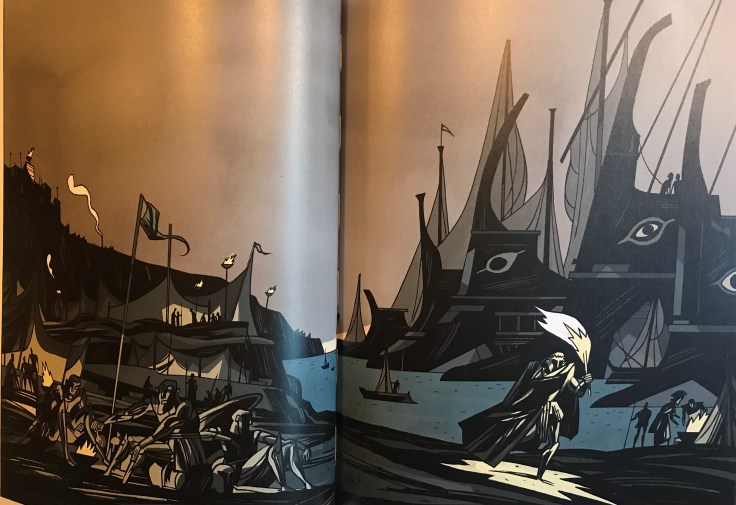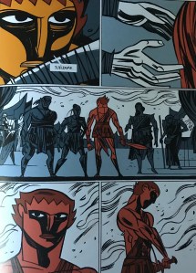 Mención especial para las ilustraciones. Las imágenes son poderosas, impactantes, bellísimas, en un estilo que recrea las antiguas representaciones de los frescos griegos. Predominan tonos en azul y rojo, azul para transmitir sosiego y calma; rojo de sangre y conflicto. Uno de los mejores cómic de 2020 e imprescindible para cualquier amante del género.